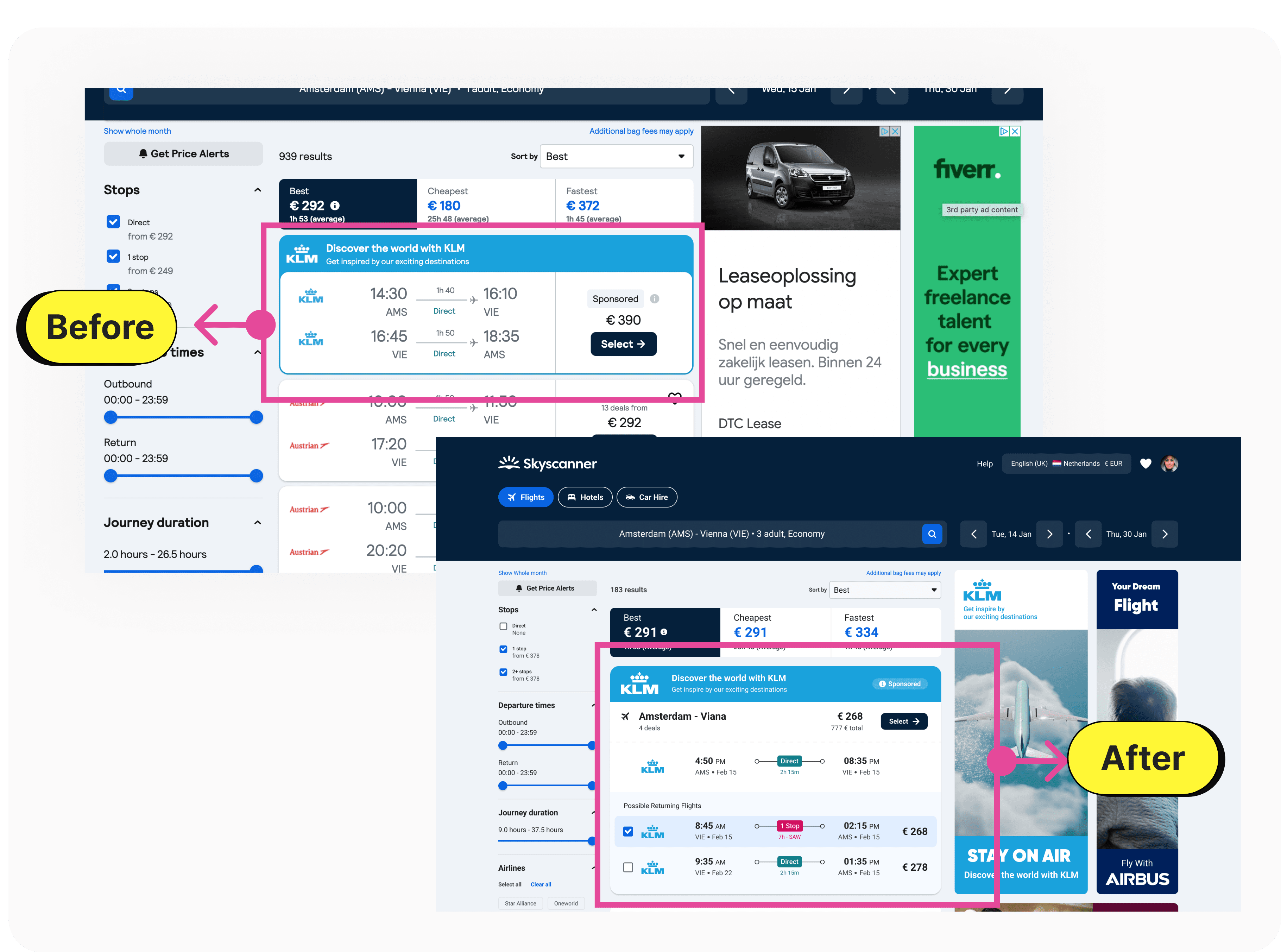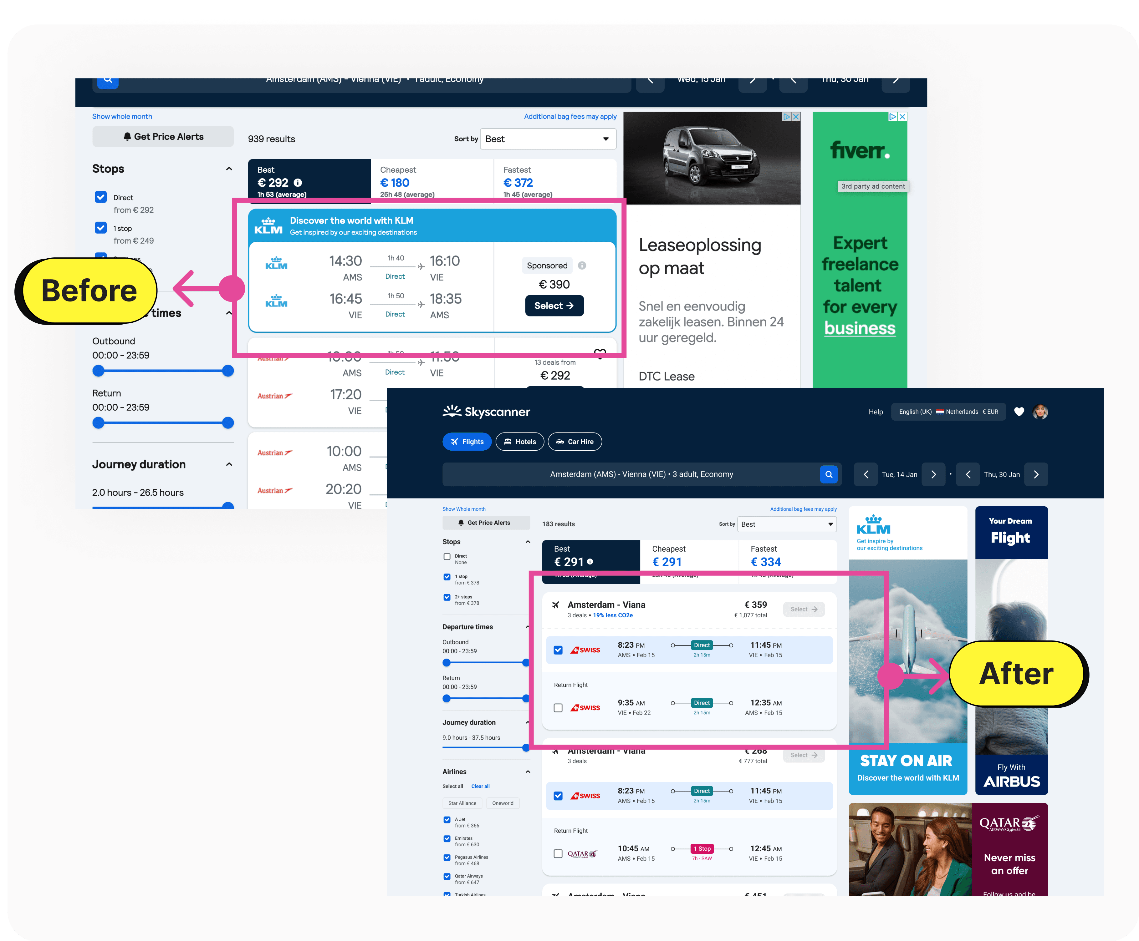 Optimized Space Usage: By consolidating redundant elements, the layout becomes cleaner, allowing more flight options to be displayed without clutter.