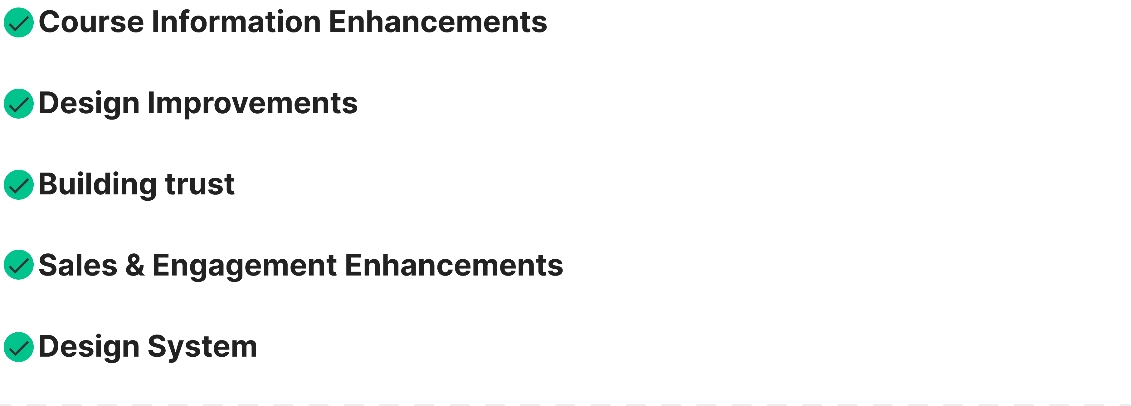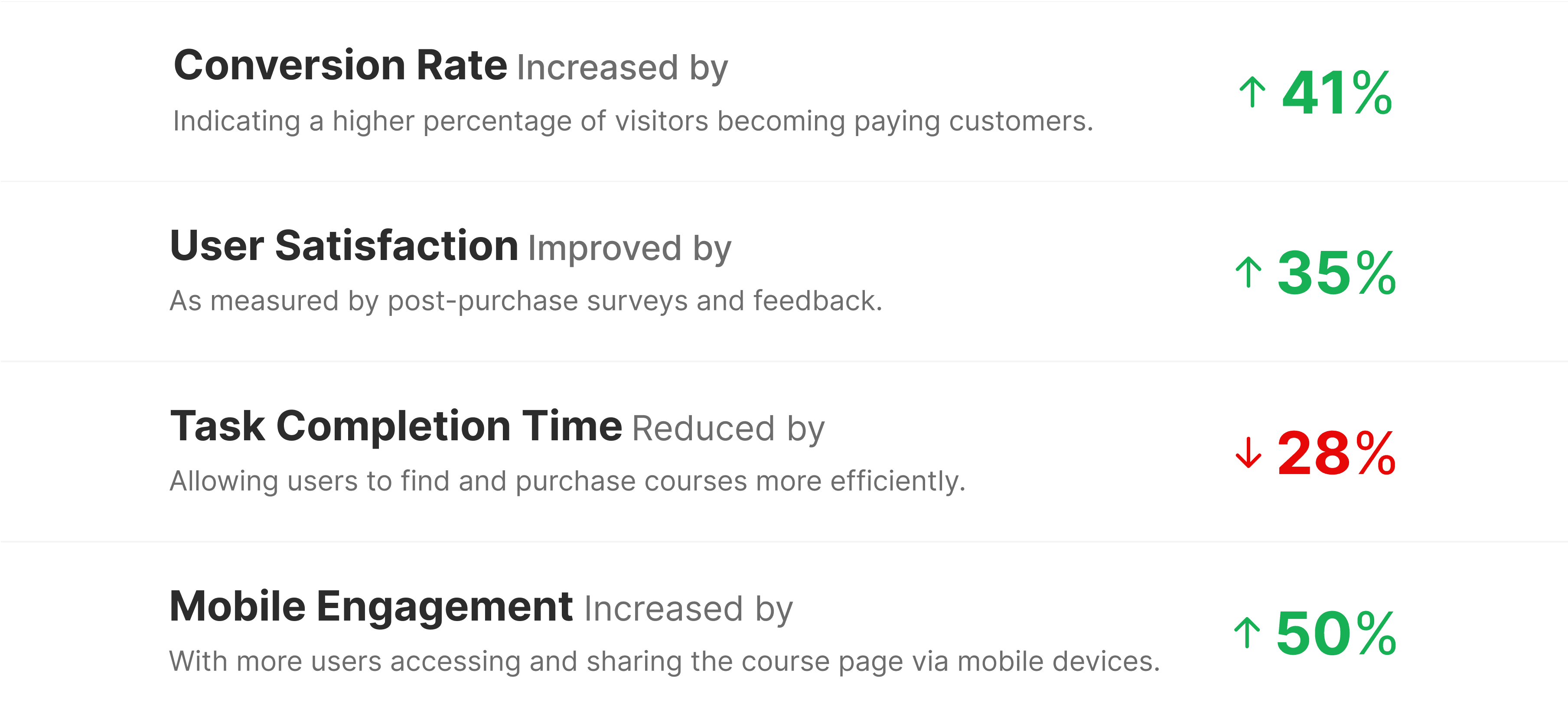 The redesigned course page resulted in significant improvements across various metrics, showcasing the effectiveness of the implemented solutions: