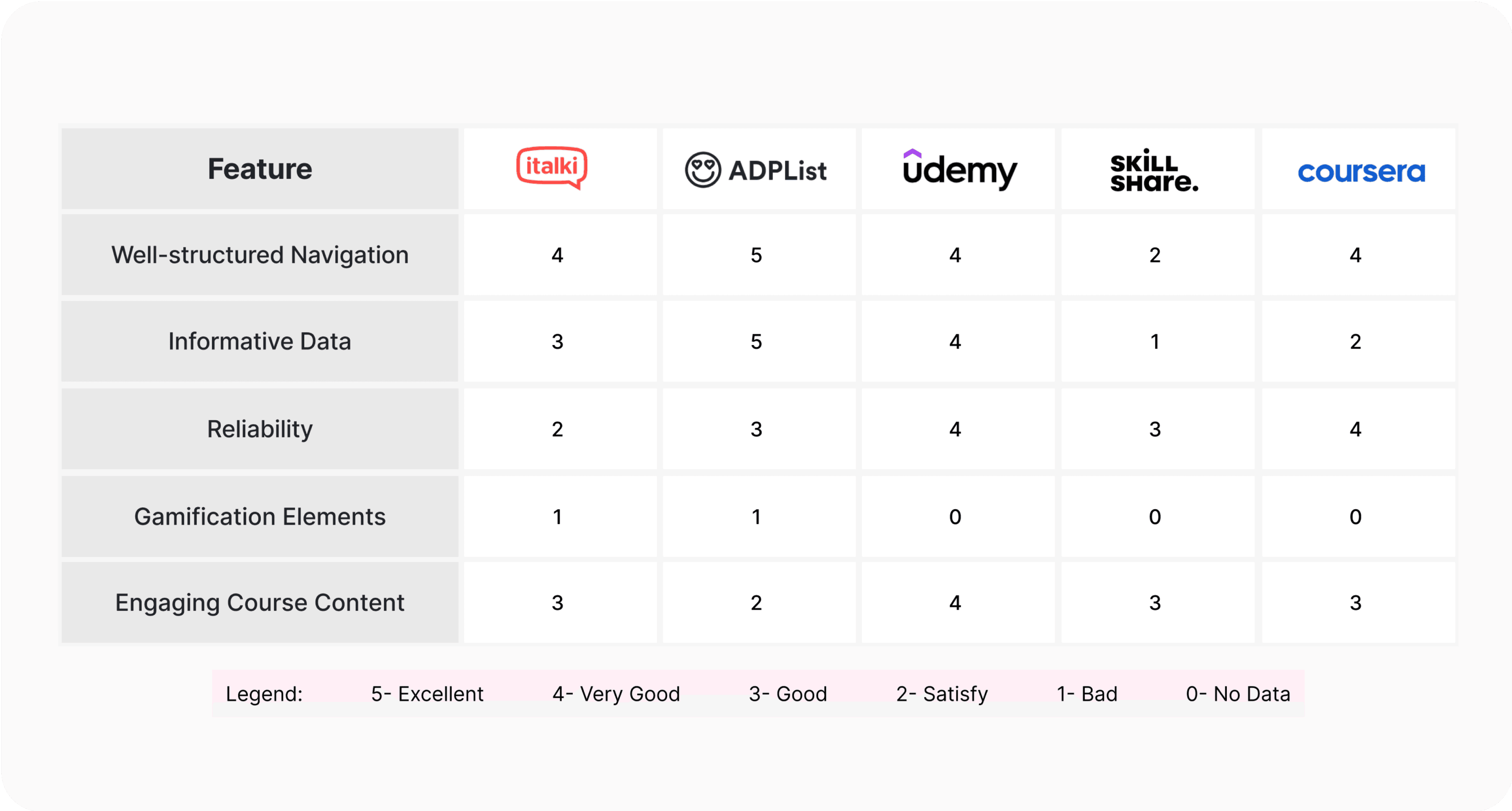 After thoroughly analysing our competitors, I identified several key features that contribute to their success. We also assessed the user interface design of these platforms.