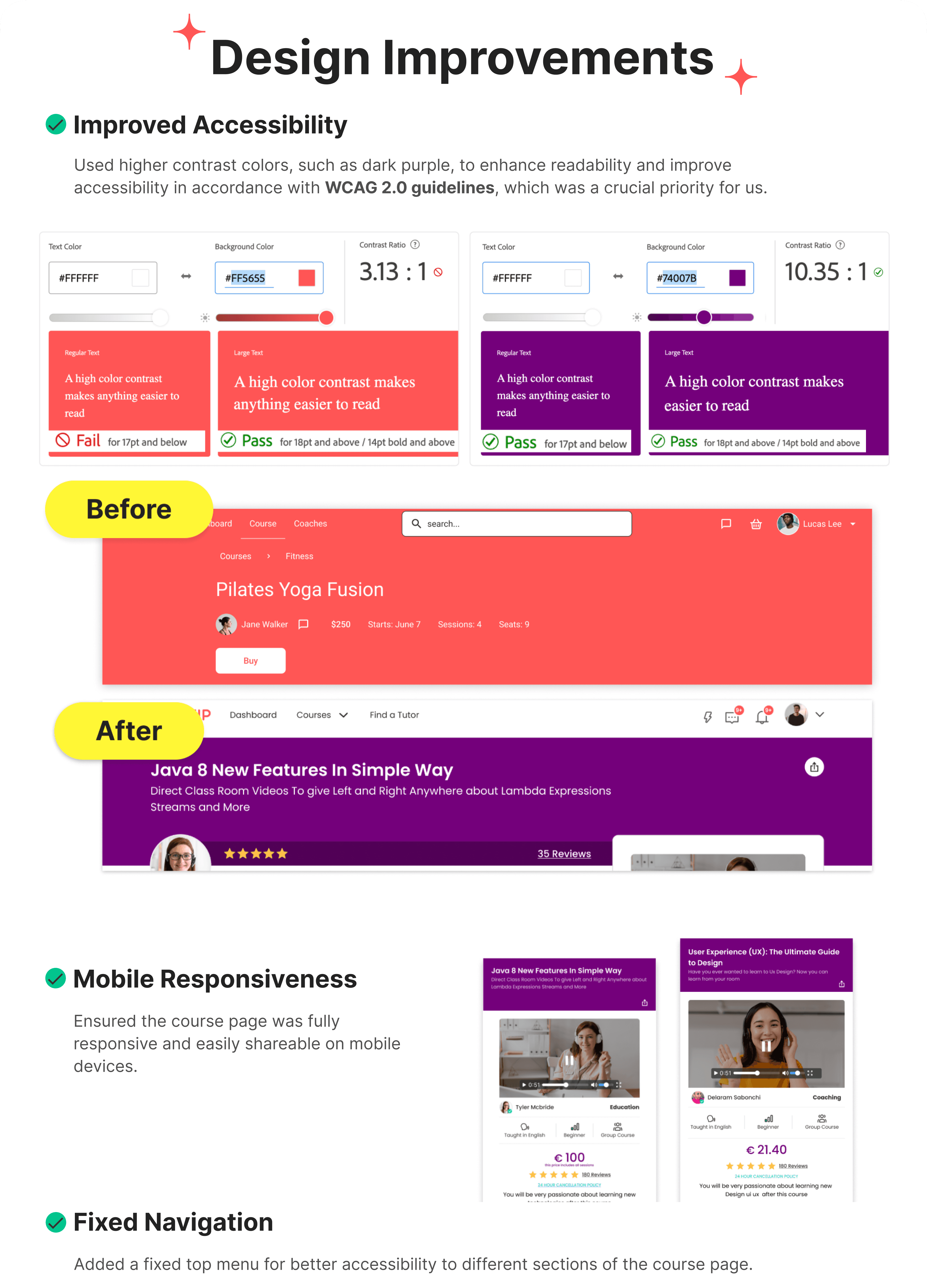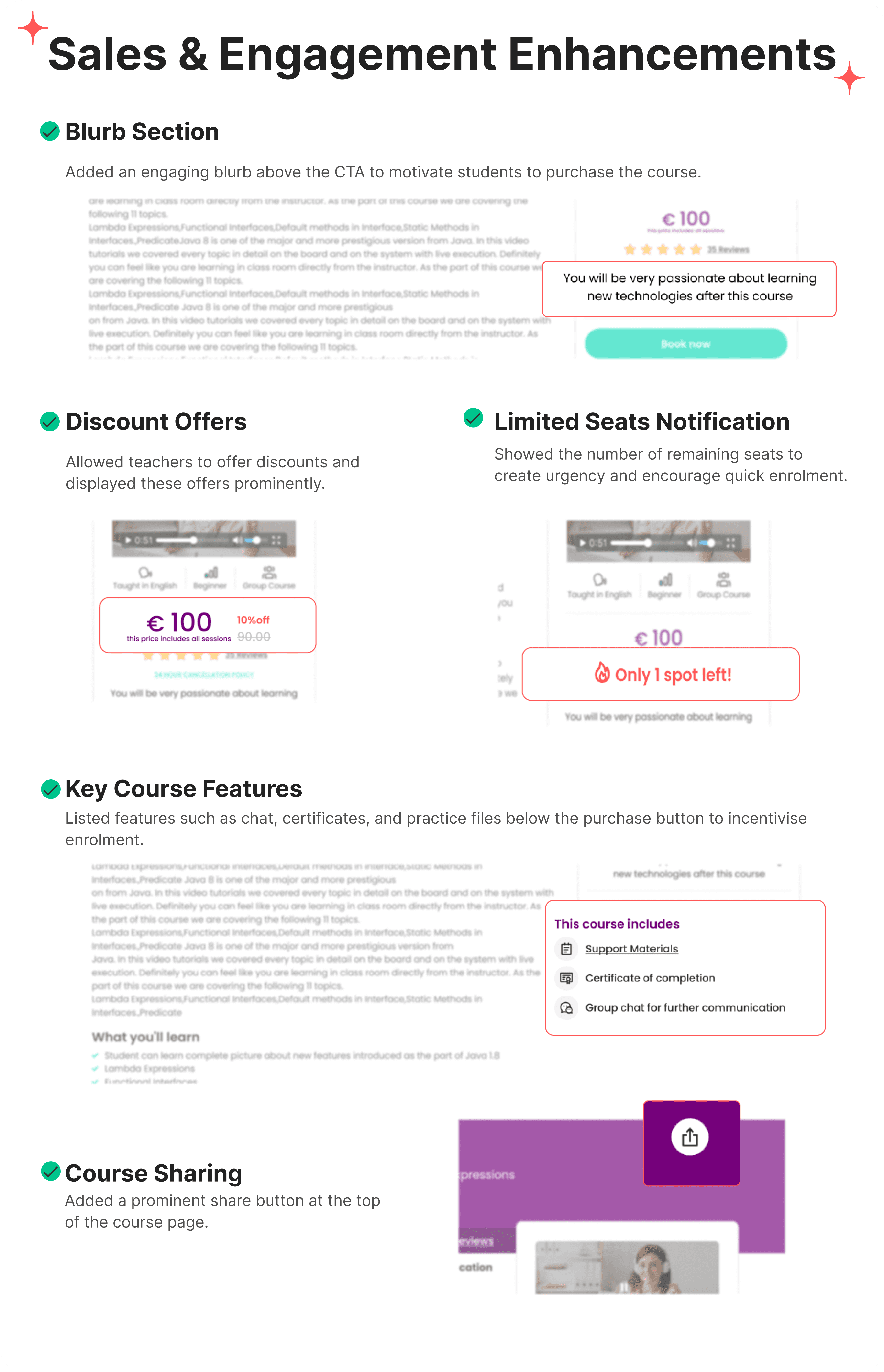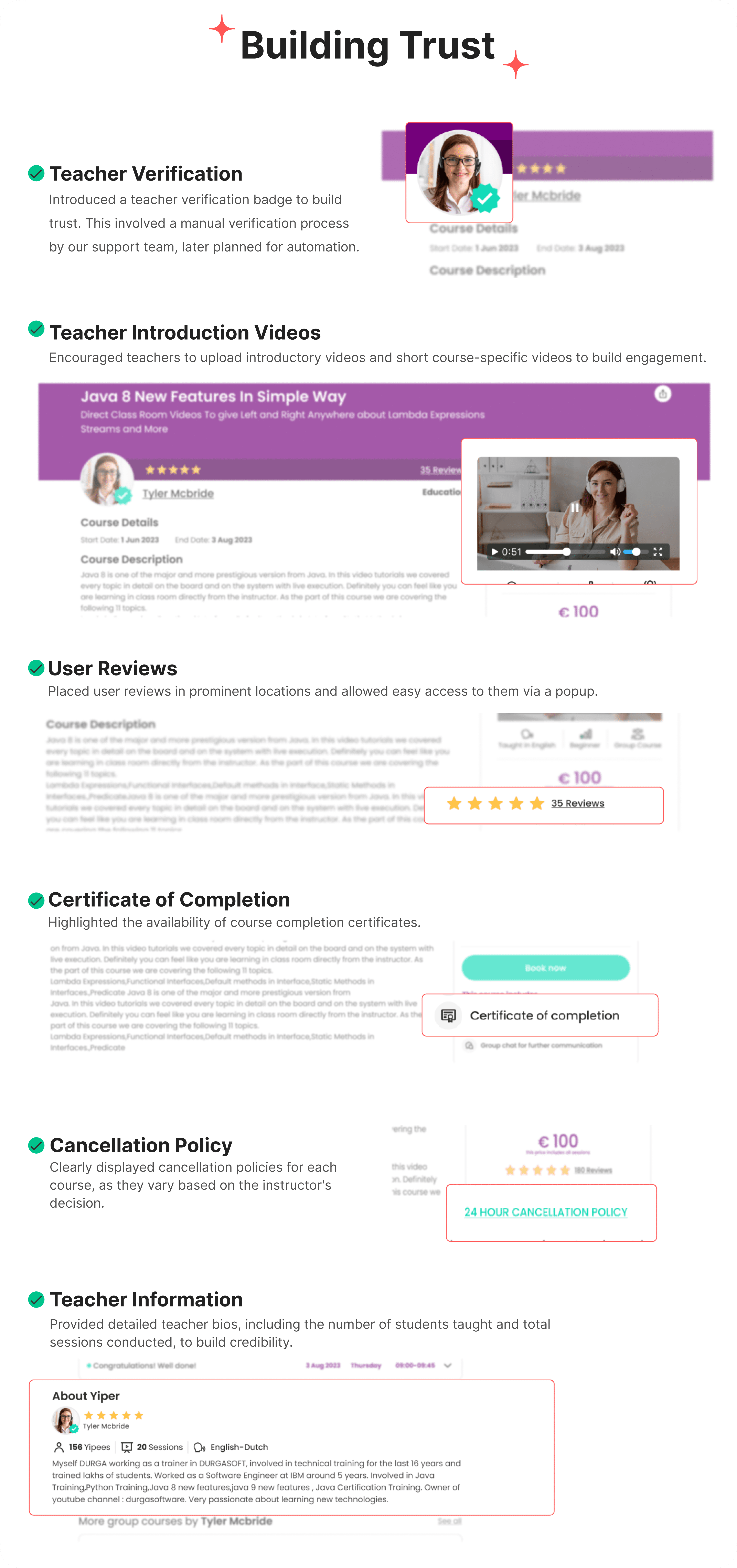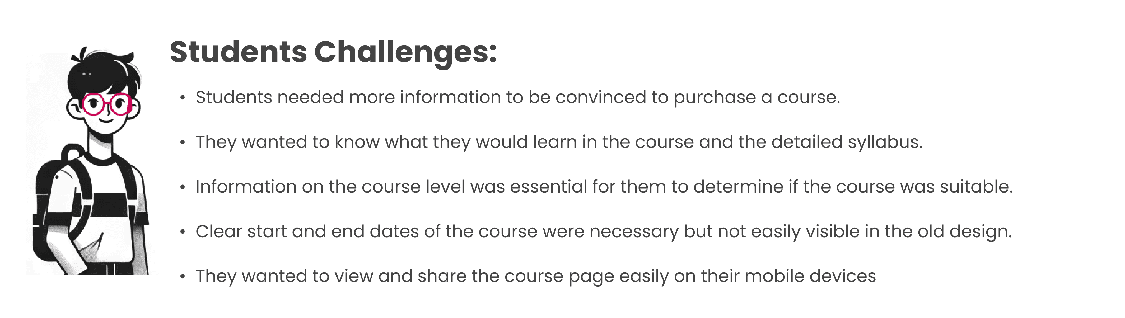 Through rigorous testing and iterative improvements, we successfully created a course page that meets the needs of both students and teachers, enhances usability, and drives business growth.